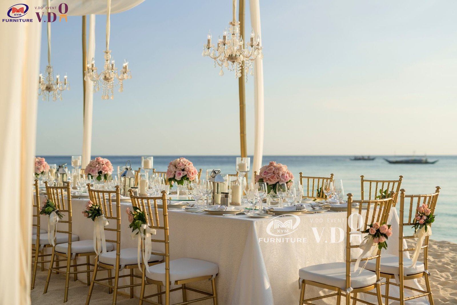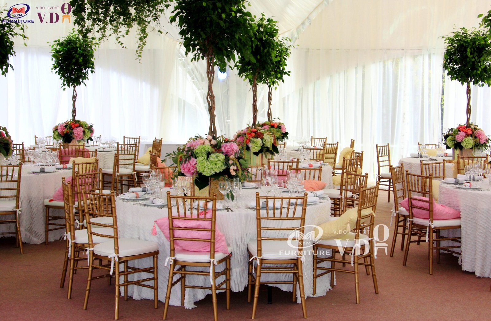 The Iron Chiavari Chair is a visually striking chair with a bamboo design and classic flavor that makes it a highlight of the wedding scene. Not only does this chair add a classic style to the wedding venue, but it also allows guests to feel the elegance and charm of tradition in a modern wedding.